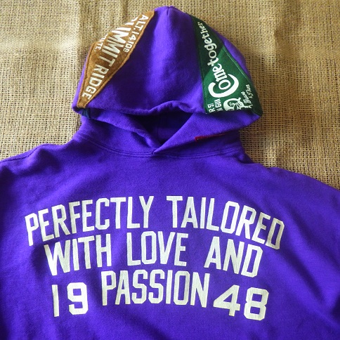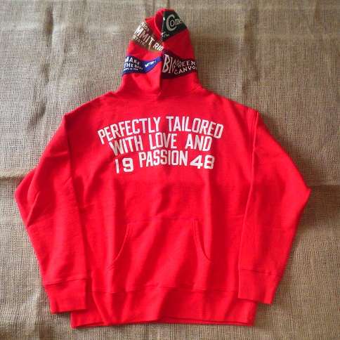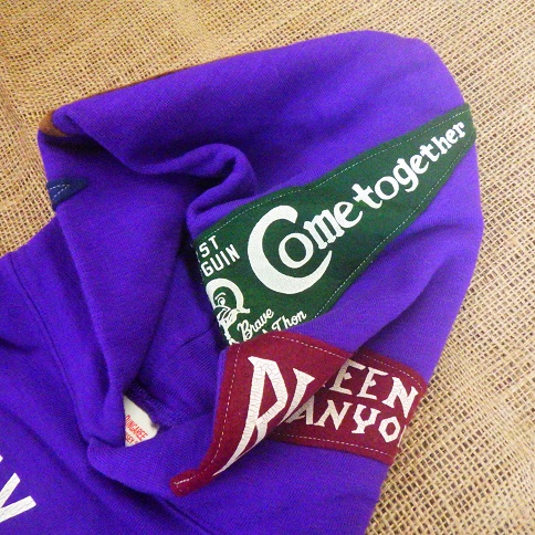 フード周りにお気に入りのペナントを付けたDDらしいリメイク風パーカー★