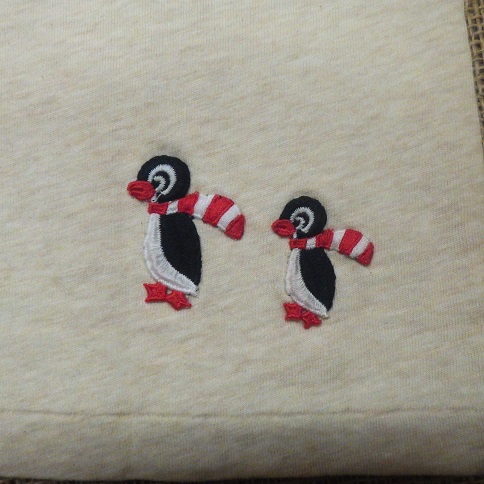 今期はフロントにツインズのペンギンプリント、バックにアーチ状のアップリケ、右裾部にペンギン刺繍といったデザインです。