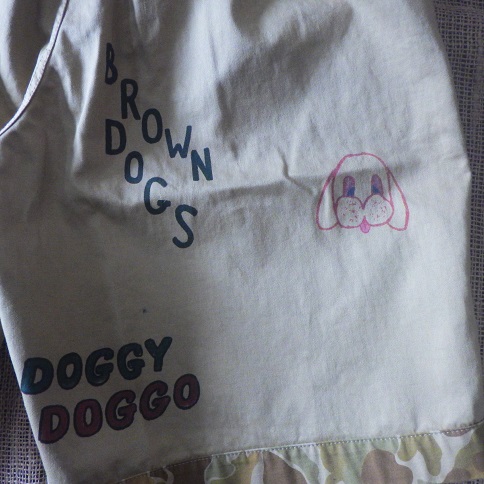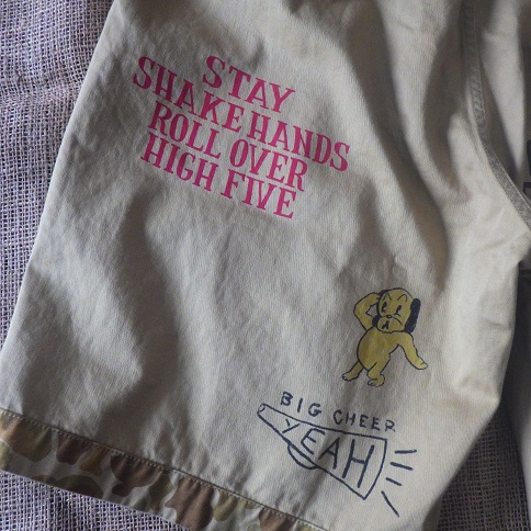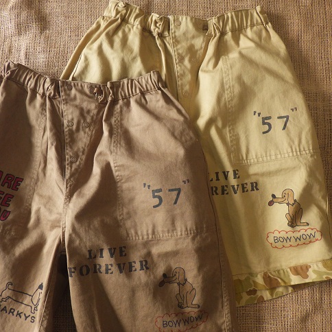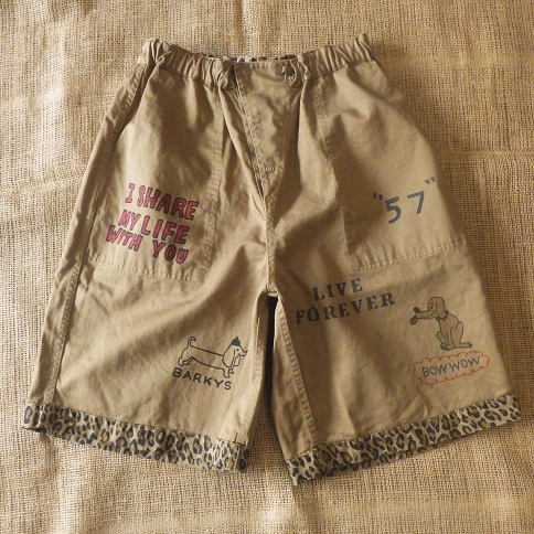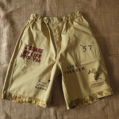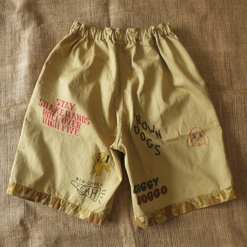 落書きプリントが施されている面と、総柄のふたつの顔を持つショートパンツ。