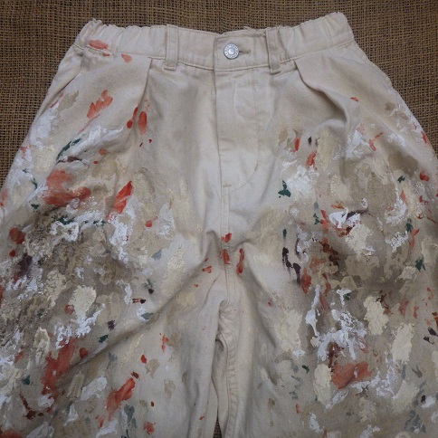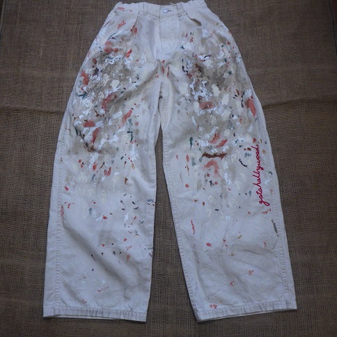 ハードめの汚しペンキ加工が施され、左脚にはGO2の刺繍がさりげなく入ります。