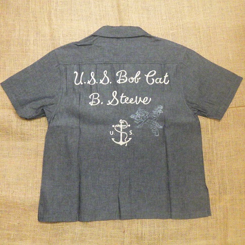 背中にはU.S.S(United States Ship)には存在しない、架空のBOB CAT艇のチェーン刺繍を施しています。
