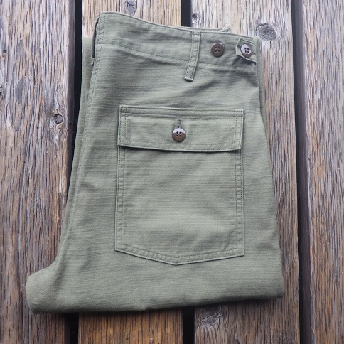 既存のモデルより股上やワタリにゆとりを持たせ、よりミリタリーらしいストレートシルエットで製作。